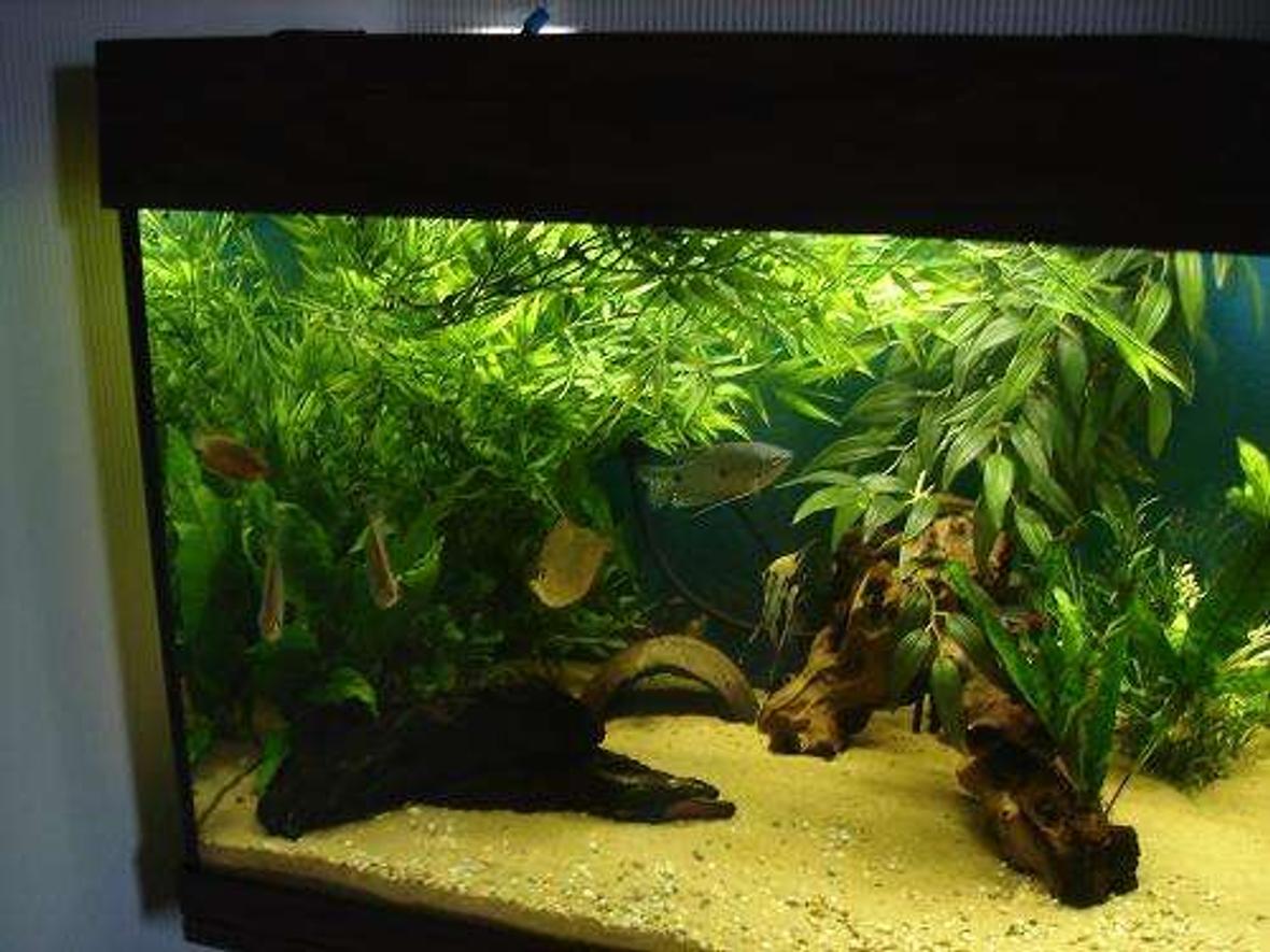 My tank is a jewel 180 which is 180litres or roughly 40 gallons. Filters in the tank at present are standard filters plus nitrate removal filter and a carbon filter. I have two lights one 30w fresh water lamp (good for the plants and enhances fish colour) I also have another dimmer light. I also have an air pump with blue LED light.