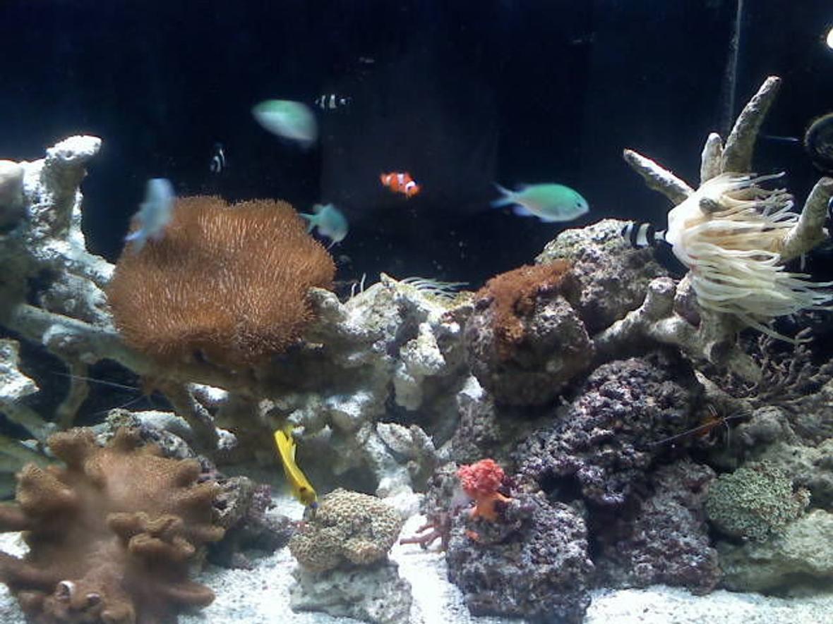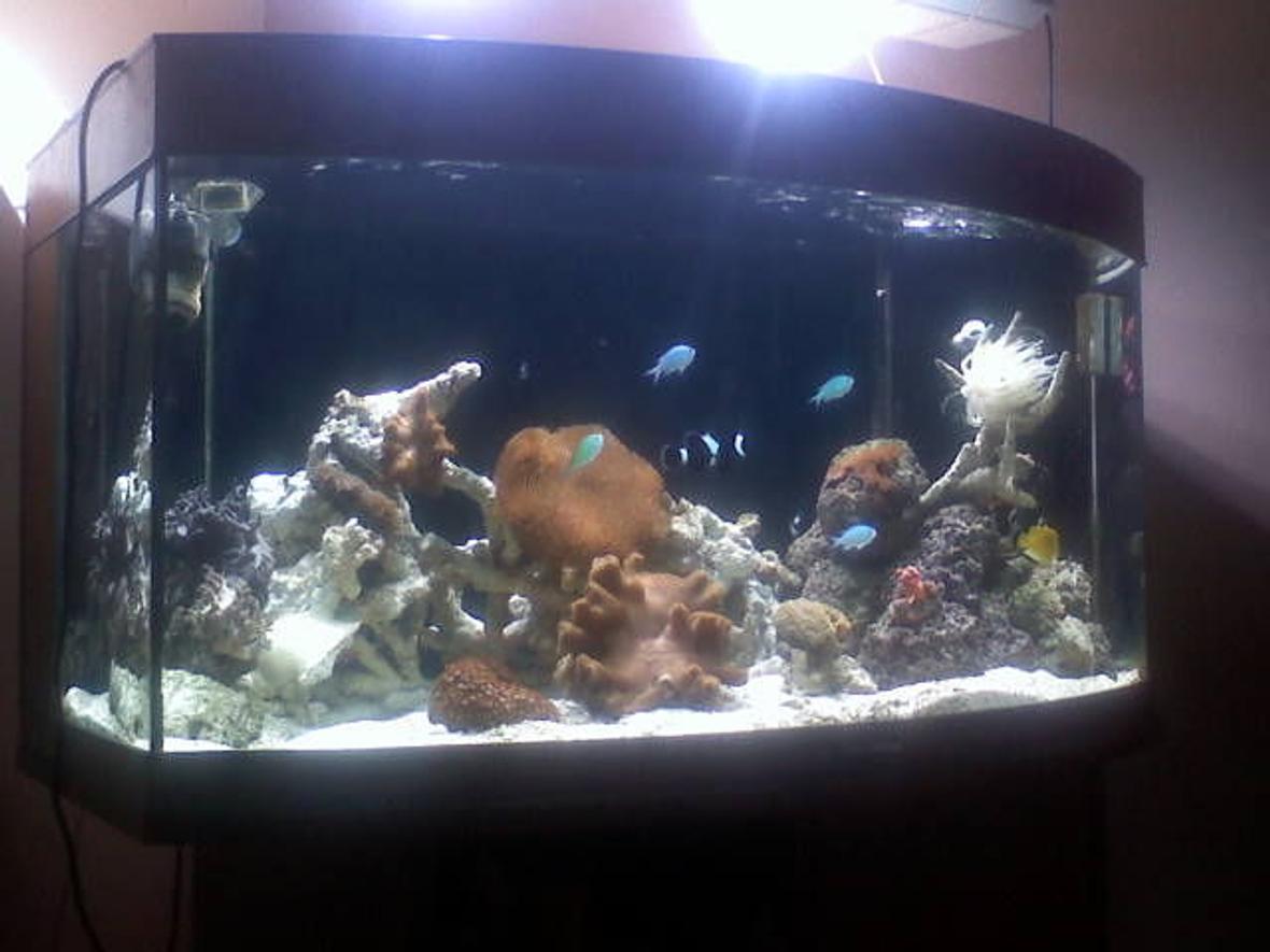 aqua medic bowed front 4ft by 4ft wide.20kg of lava rock appox 20kg of live rock started 6 months ago