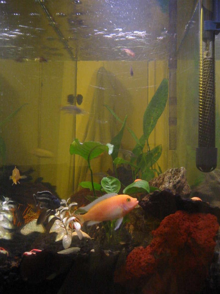 I have a 32x20x12 35 gallon fish tank. I have two potted plants that are growing healthily. I also have some rock to provide caves and cover for my cichlids. I'm using a whisper 4.0 along with a weak air pump.