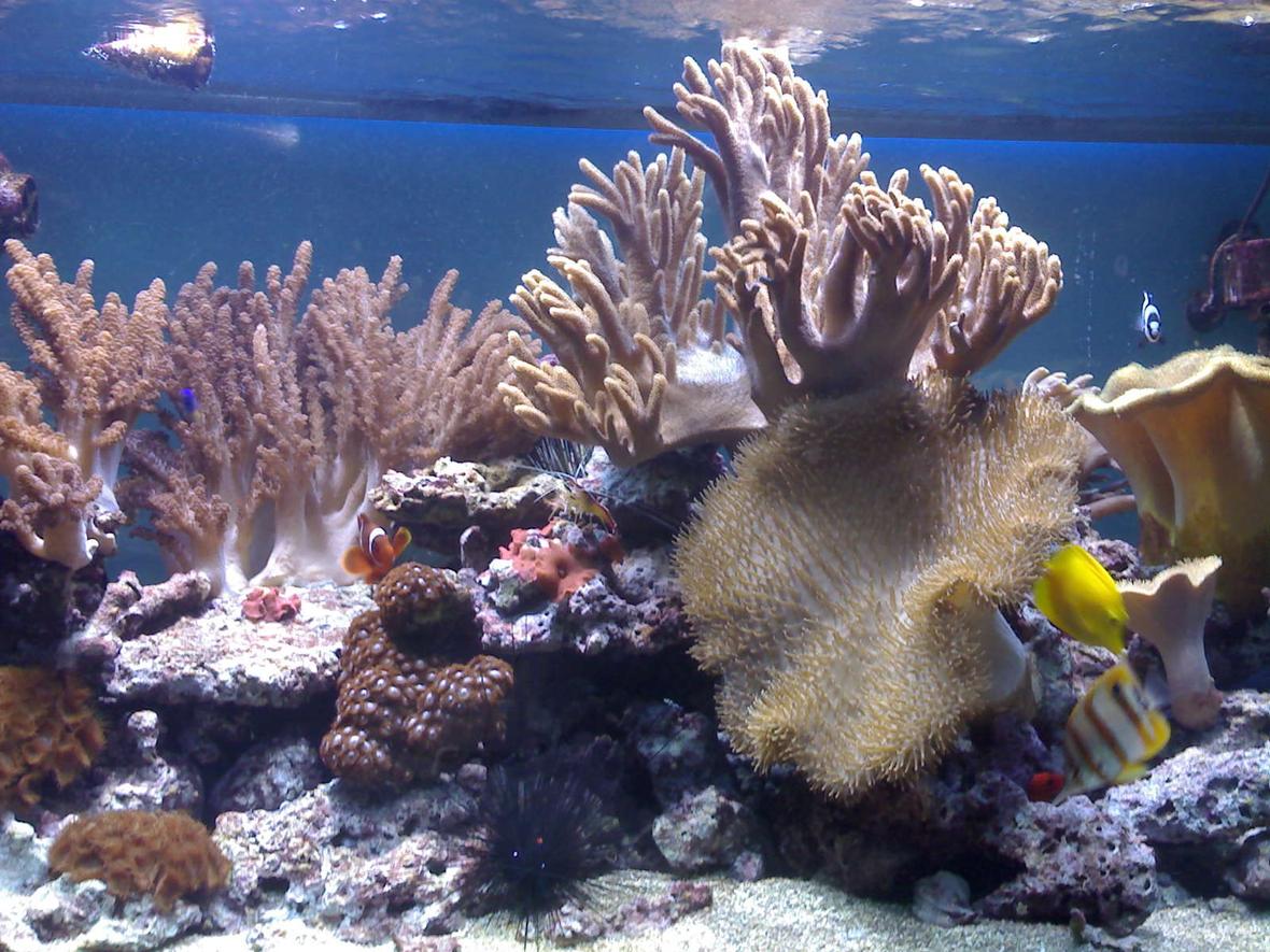 illuminata da 2 plafoniere, una con 5 T5 di cui una attinica bleu l'altra con 2 hqi da 250 watt.