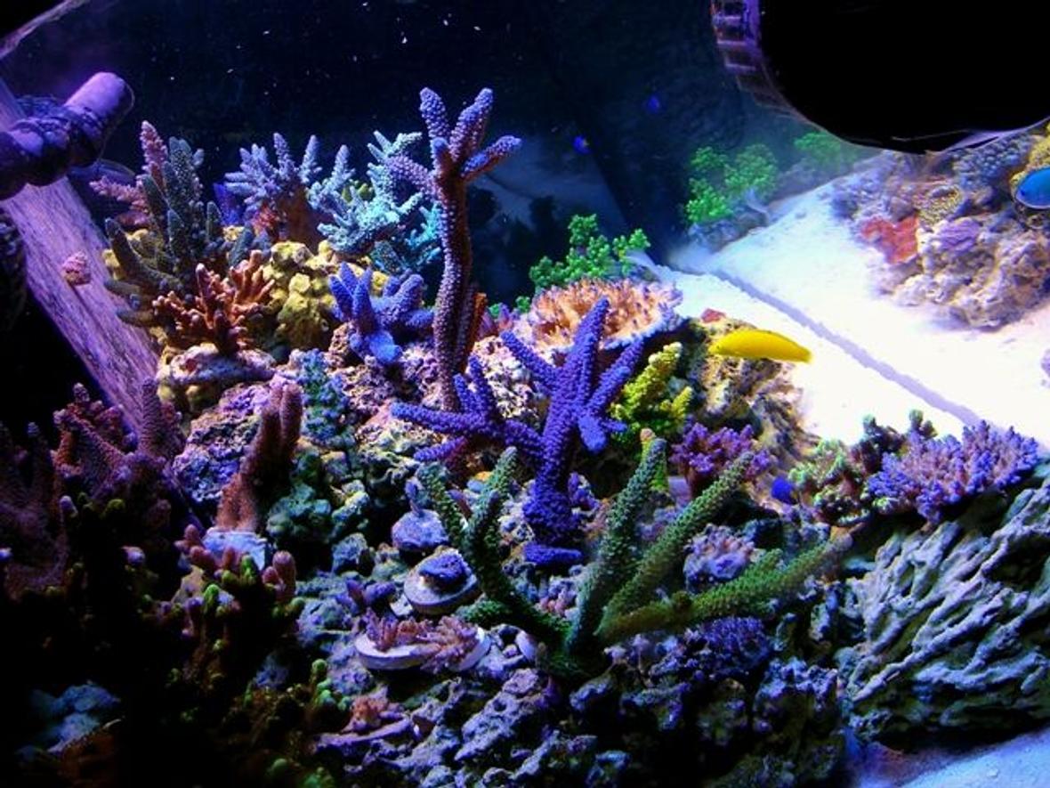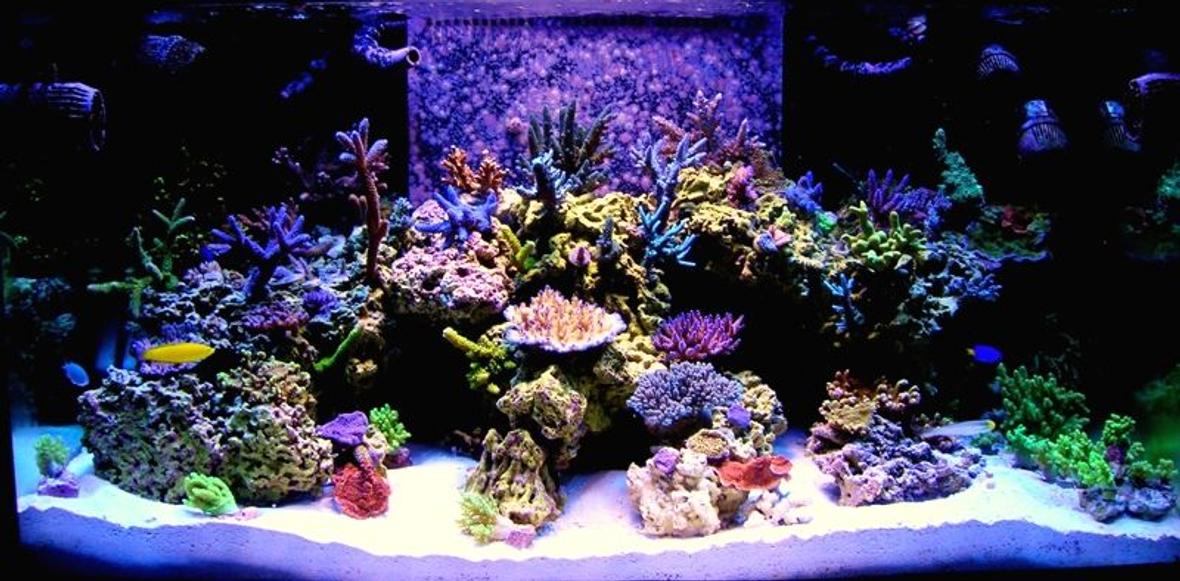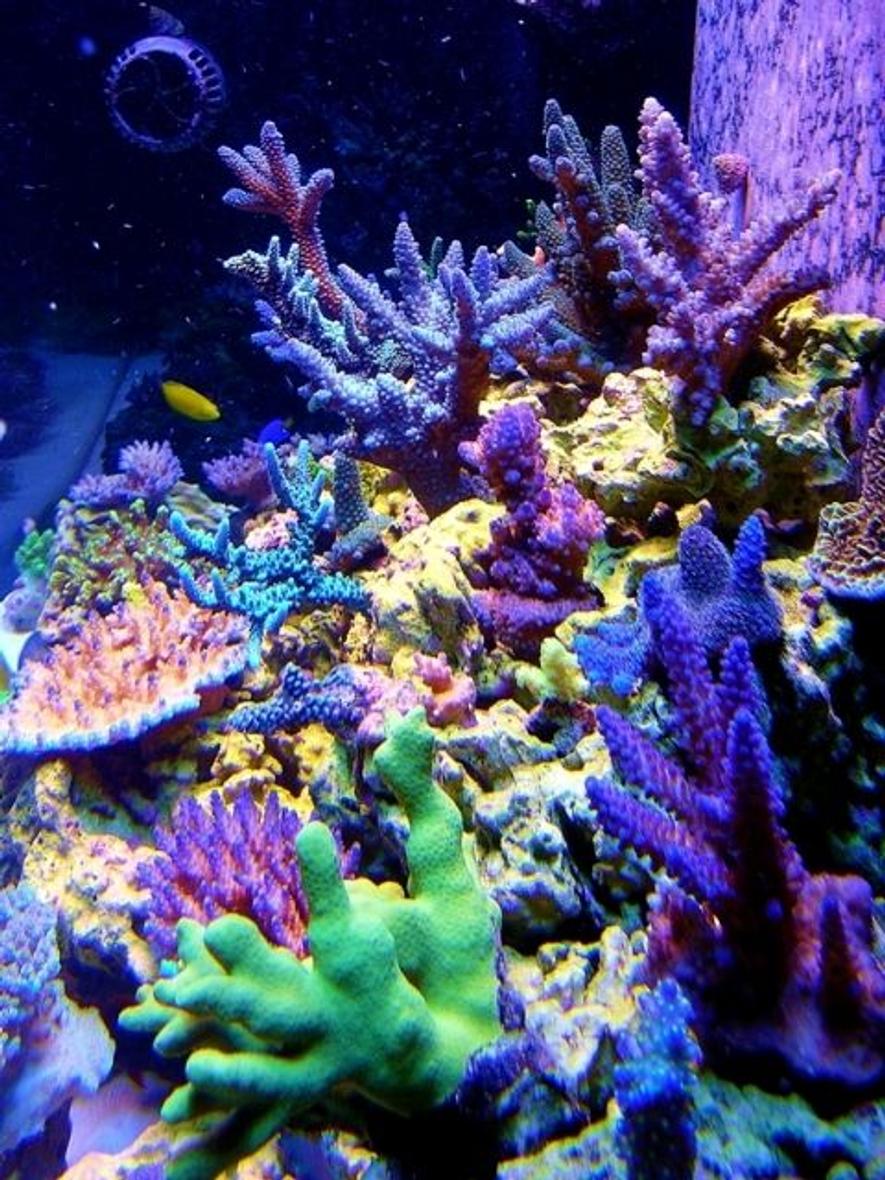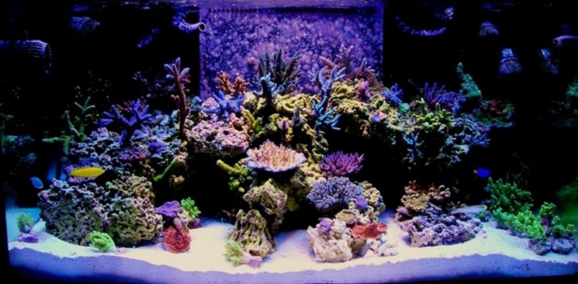 This tank is 5 months old ,all corals where grown in my old 46g bow and 72g bow .Ive been around fish tanks for over 18 years it takes time, most people cant understand how my tank looks the way it does after 5 months ,the pic of my tank is at 4 months ,Its a lot of hard work and prep time involved with setting up a reef tank there are no shortcuts , but all Marco rock was soaked in a vinager bath for 10 days then a muratic acid bath for 12 hours, then it was cured with some liverock in a rubbermaid bin ,also live sand was used and the Seachem reef salt was a big help no major algea outbreaks white sand and no algea on my rocks the only problem is Coralline Algae its all over everything I am not crazy about it but the more i scrape it the faster it grows ,
