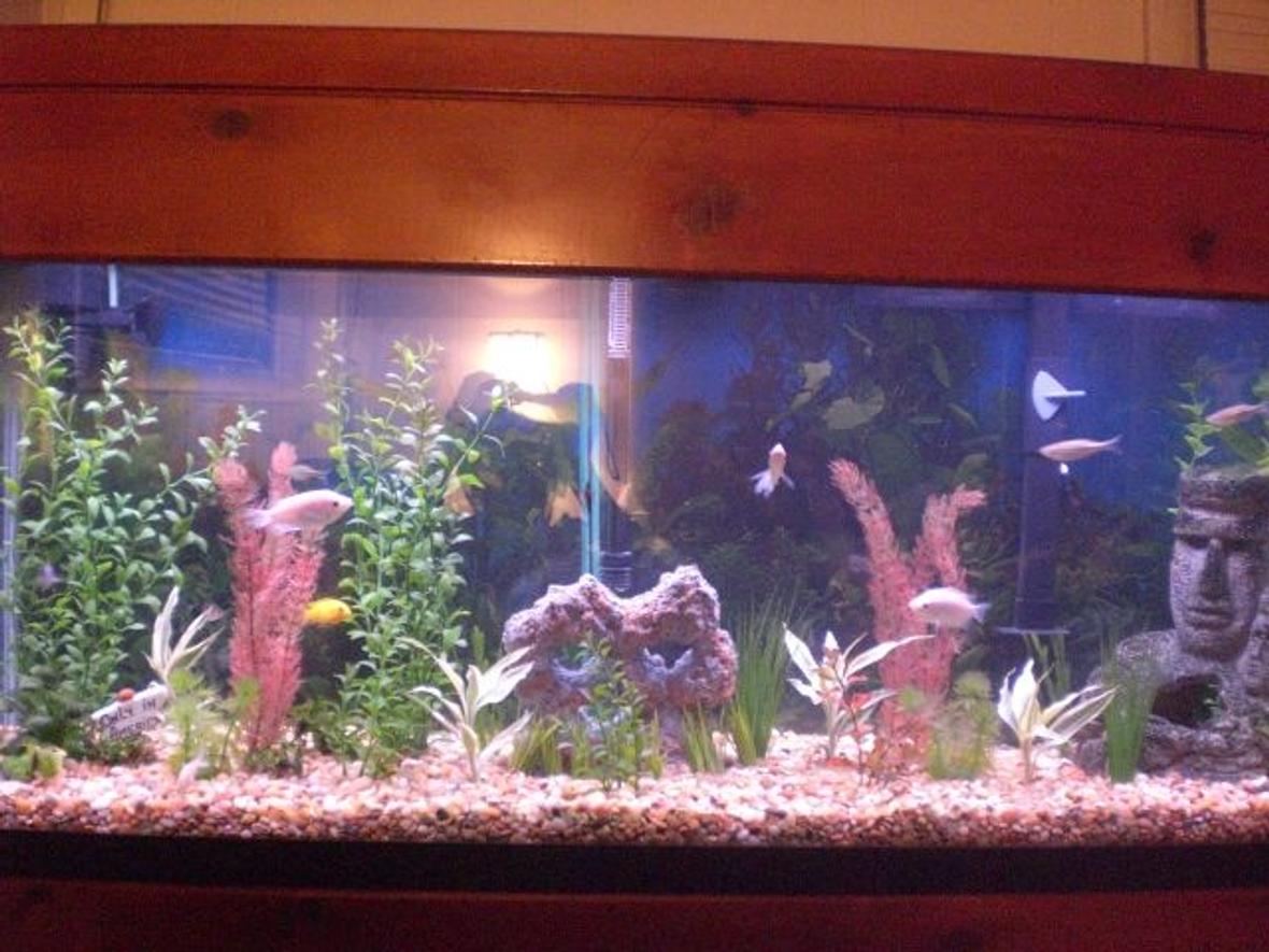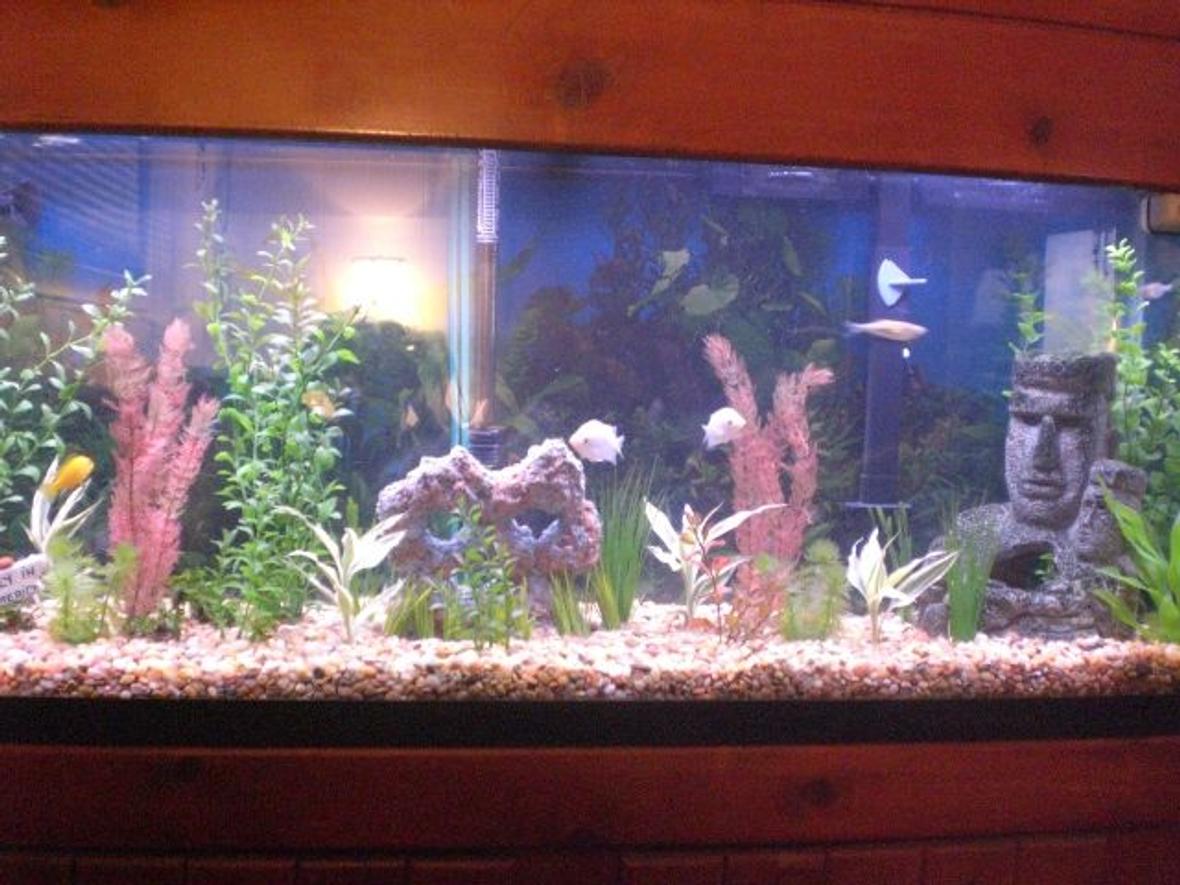 i have a 55 gallon all Glass brand tank with a cherry wood stand and canopy!!! I use a marineland 350 bio-wheel filter a marineland 250 watt heater, a penguin 750 powerhead,an aqua culture air pump, and an allGlass aquarium premium reflector single tube strip-light 48" length.
