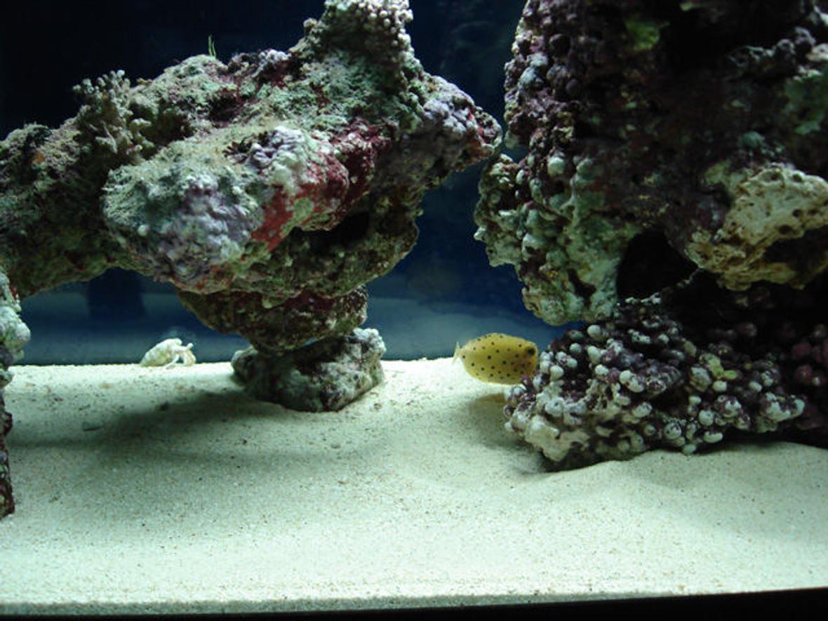 Yellow Box fish, Yellow tail damsel, Yellow face goby, Tomato clown, 2 Tiger tail sea cuccumber, and a bunch of hermit crabs.