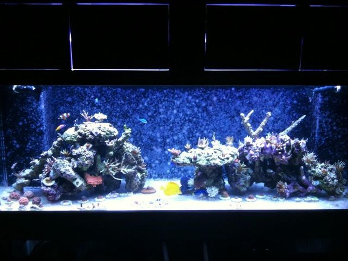 lighting: 3x 250w phoenix 14k DE in Reef Optix 3 Plus Reflectors run by Sunlight Supply Dual 250W Electronic Ballast, and 2x 60" Super Actinic VHO.