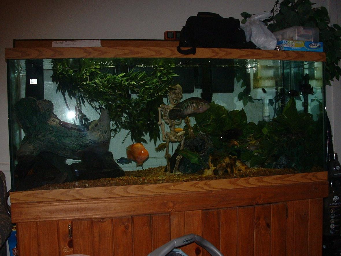 I have a 120 gal tank and i have assorted of cichlids. I have 2 emperors 400 and a 150 wet/dry keeping it clean and healthy. I got a 300 watt heater keeping it nice and warm. One 48in light bulb and housing. A 900 gph power head keeping the water moving. Two 15lbs. of rocks on the bottom of the tank, looking to add sand don't know yet. 4 plastic hanging plants. 4 plastic tree trunks for hiding.