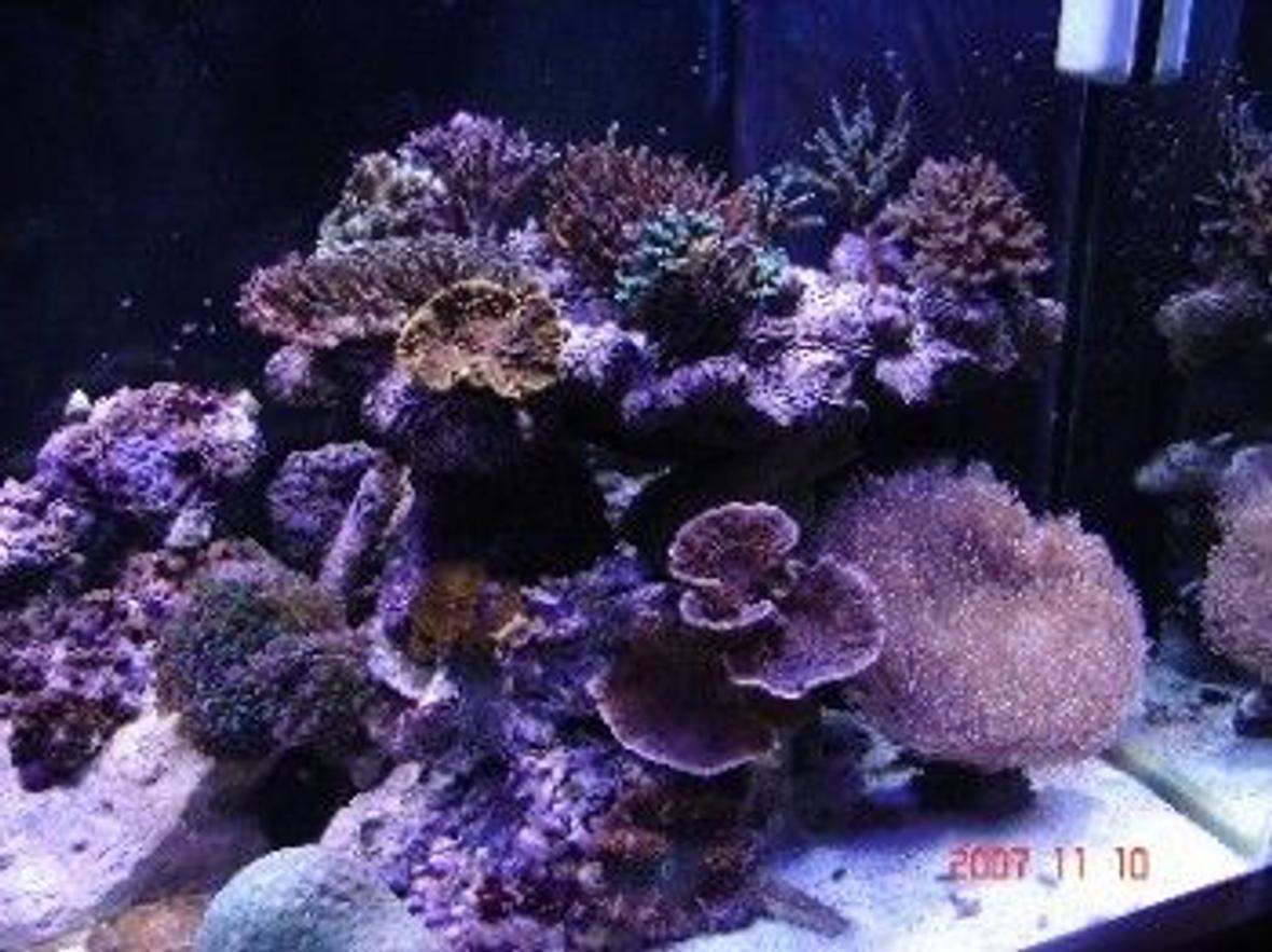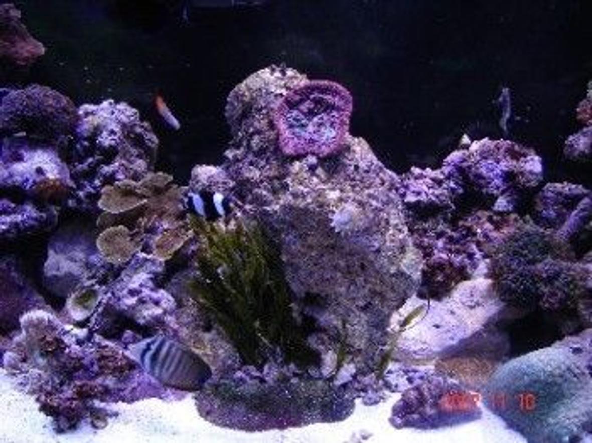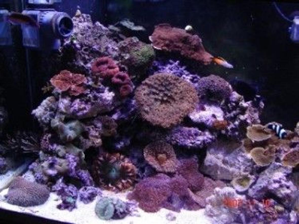 180g allglass,54g sump,3 250watt reeflux 10000k mh,2 6ft vho att,genx 40,mag 12,seio and tunze powerheads,mtc hsa 250 beckett skimmer,current1/3 hp chiller,knop calcium reactor.....................