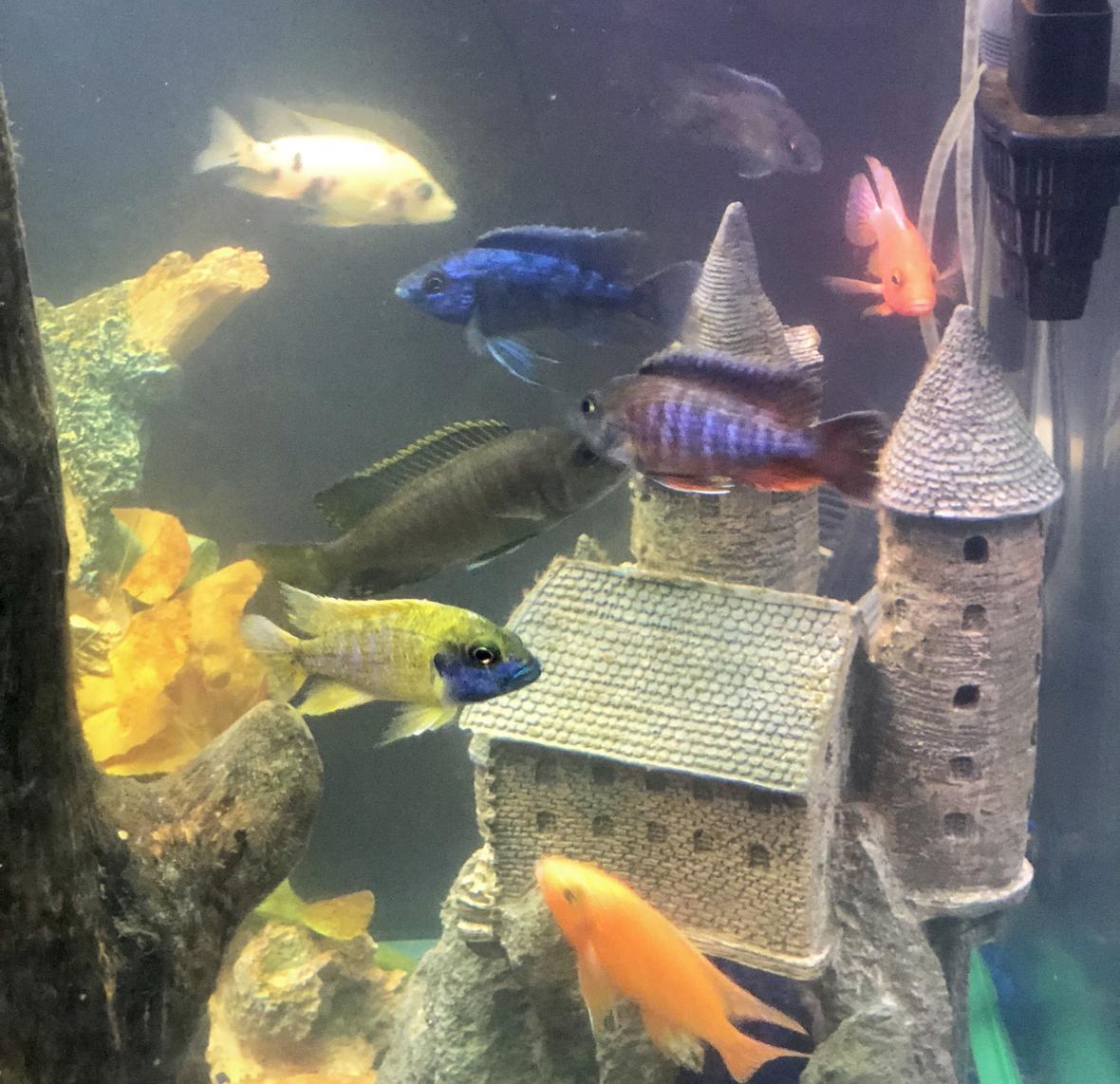 I have a 47 marineland column tank. It`s 30 inches deep. I have 8 peacock cichlids in there and one blue acara.