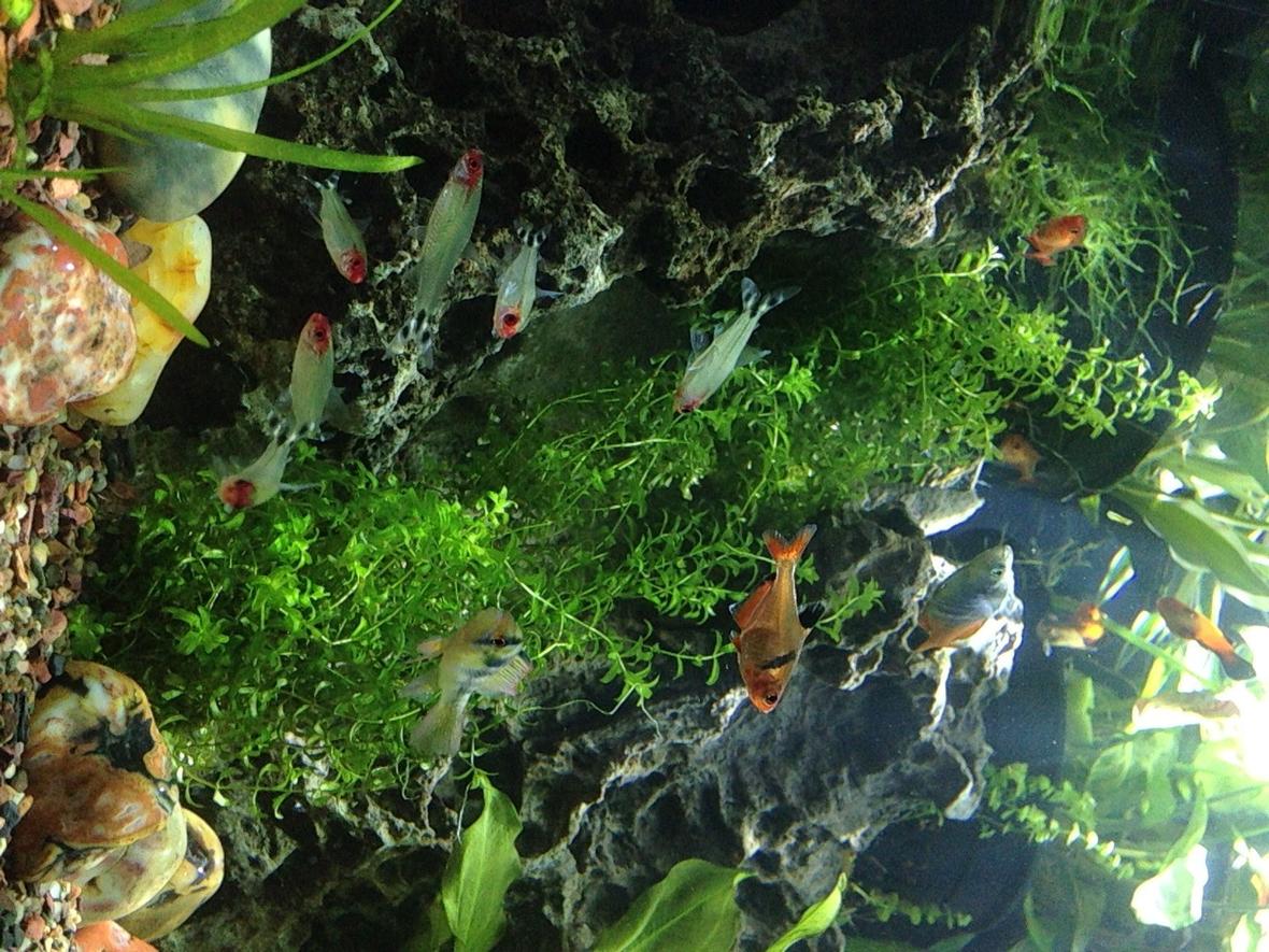 True Rummynose Tetra, Red Minor Serpae Tetra, Boesemani Rainbow, Red Wag Platy, Common Pleco