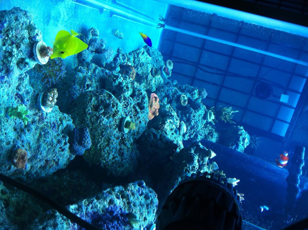 2 clownfish, 6 line wrasse,1 royal gramma,cleaner shrimp, Yellow tang, flasher wrasse,and 2 cardinals