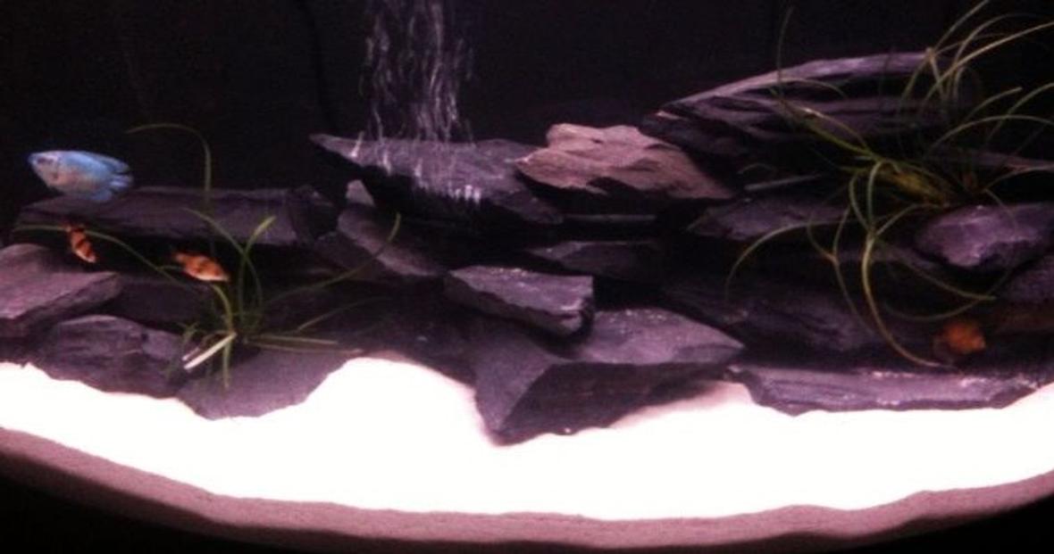 20 lbs of live sand, 25 lbs of black slate, and two bunches of Mondo Grass.