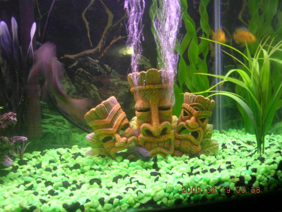 60 gallon AFRICAN CICHLID tank with 1 black shark. green and black rocks,with one flourescent light with a mirror. green and black non-living plants