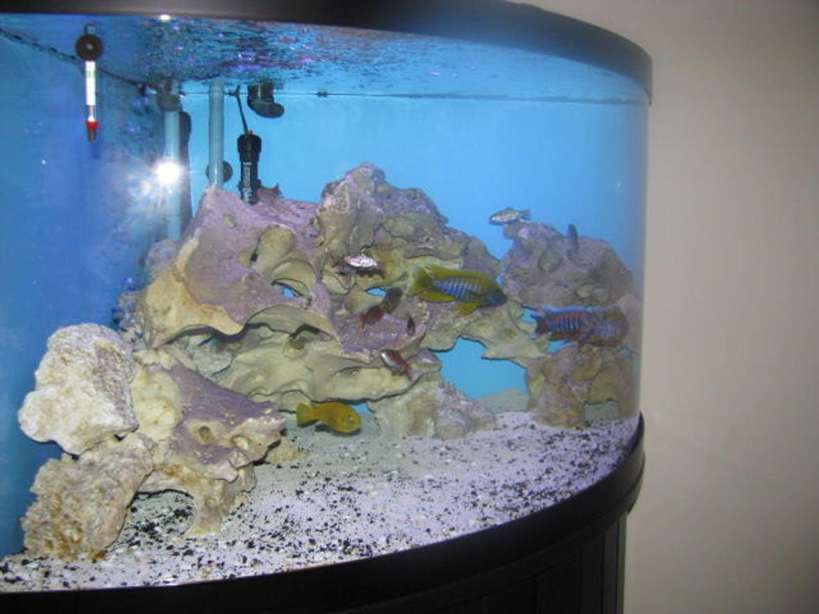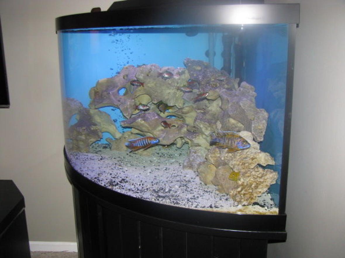 This is a 92 gallon corner tank. 2 24" bulbs, daylight & blue. Filterd by Rena XP3 & XP2. Heated with Stealth 250w & 200w. About 100 lbs of texas holey rock.