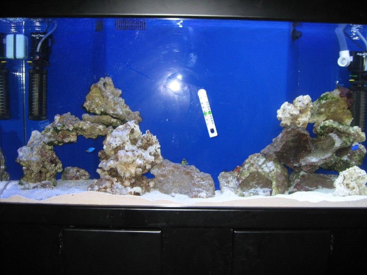 75T, Tru Vu tank. Built in wet/dry filter in the back, and 2 power heads