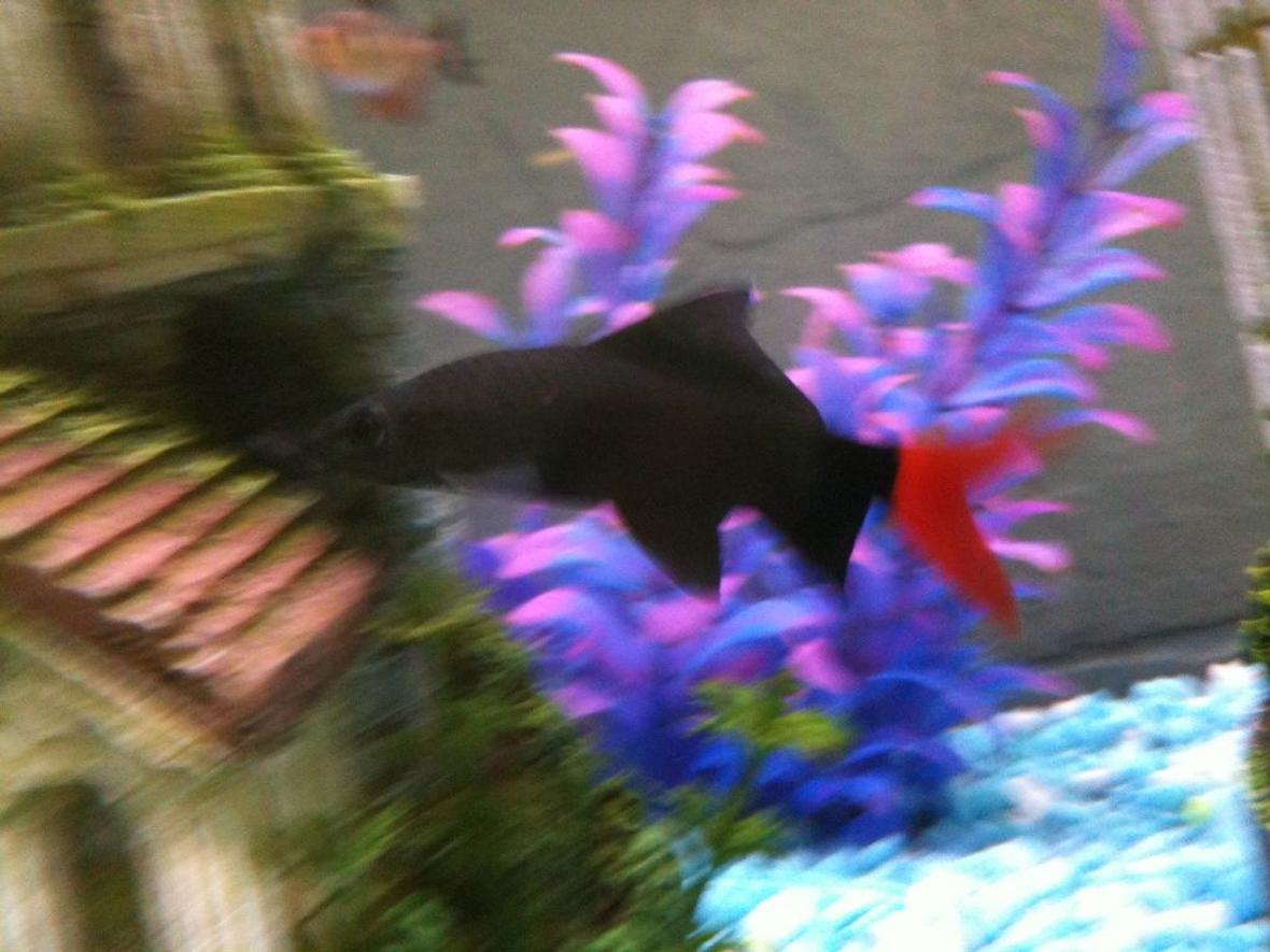 Red tail shark, 2 Indian Flasher Barbs, 1 Bala Shark, 1 Albino Pleco, 2 Angel Fish, 3 Black phantom tetras, 1 Bleeding Heart tetra, 1 Bloodfin Tetra, 2 sunset mollies, (1 scissor tail, 2 Rainbow sharks)