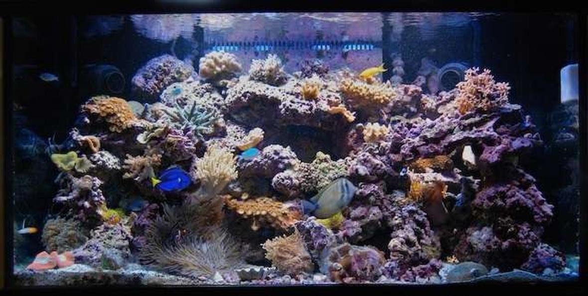 I have 48"x24"x24" Oceanic 120 gallon with a 40 gallon sump. My lights are current outer orbit HQI 48" 560 watt lights. I have a ASM G3 skimmer, use two phos-reactors with carbon and ROWRban phosphate removal and run a UV sterlizer always. I also run 2 tunze streams on a controller and have a Reeflo Snapper Sequence pump slowed down to approxiamtely 2500 GPH. I use a tunze top off system which works perfectly. I also use th SpectraPure LiterMeter III to dose Ocean's Blend parts A + B. I have 19 fish, 2 anenomes, 1 linkia starfish, 3 Maxima Ultra Clams, a large Derse clam, a few of other invertabrates and keep a large variety of hard and soft corals. I do a 35 gallon water change every two weeks and water comes off of a RO/DI filter. My levels are always kept at 0 with a temp between 78 and 81 degrees. My tank has only been up and running for about 8 months now.