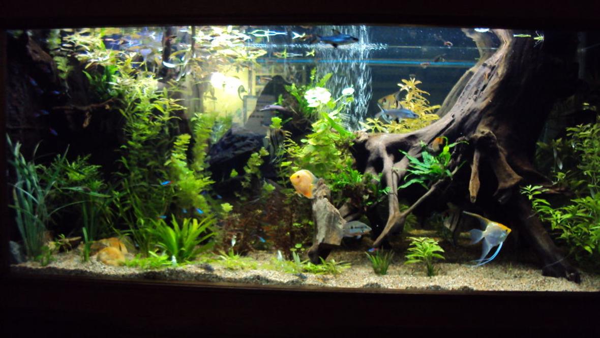 Old school community tank. Canister and rotating powerheads UGF. The tank is from a hotel lobby 1930s-1940s.