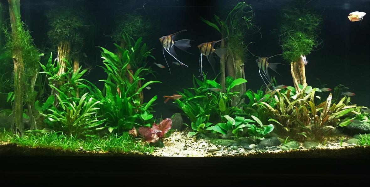Silver Angelfish, Cardinal Tetra, Cherry Barb, Panda Cory Cat, Otocinclus Catfish (, Blue Acara