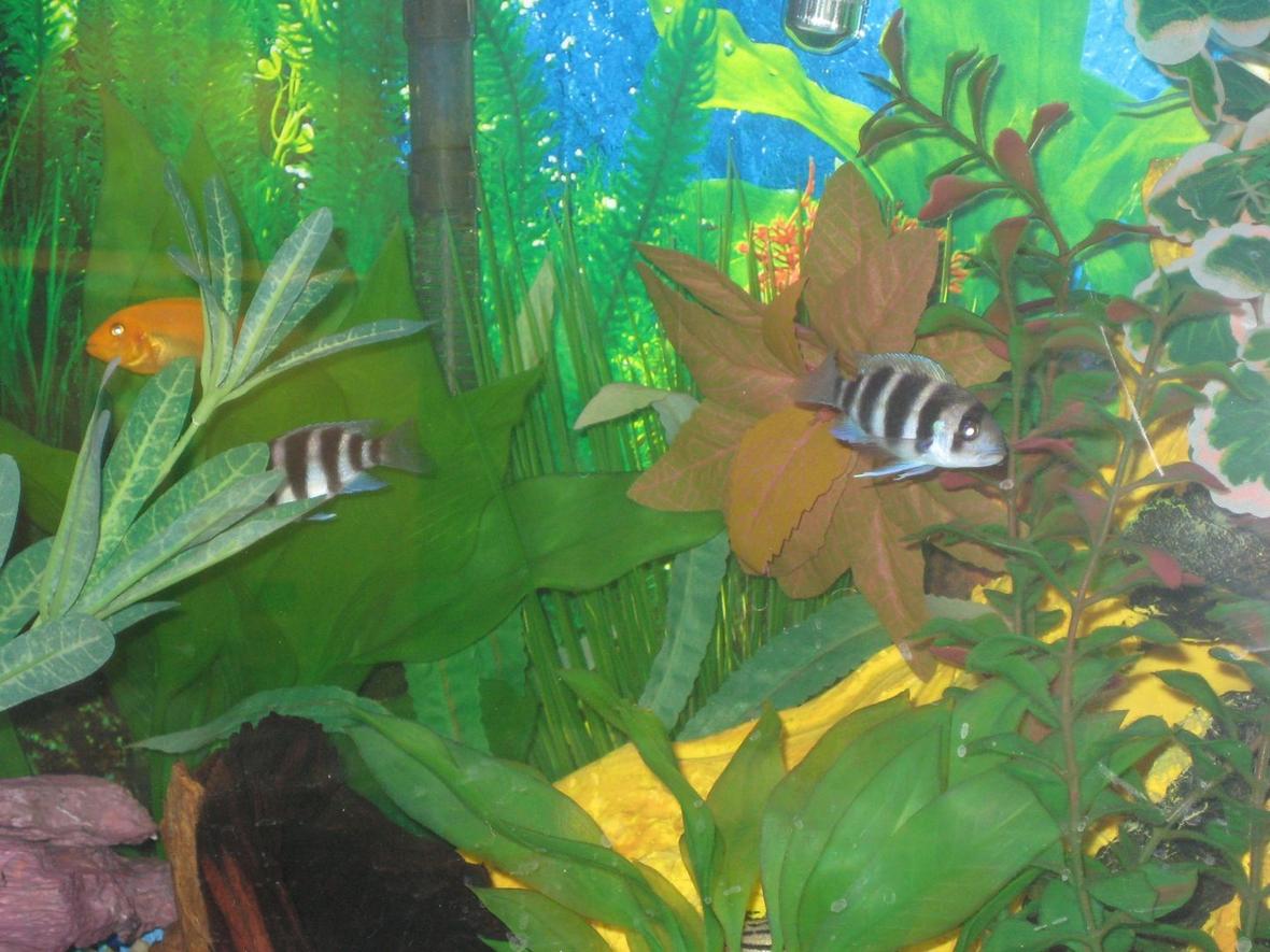 1 6" fuellborni OB, 3 Frontosa (1 is like 8" and the other two are like 3"), 2 electric blues, 2 blood parrots, 1 acei, 1 kenyi, 1 yellow peacock, 2 common plecos, 1 albino sailfin pleco, 1 6" blue night lobster, and a few other randon malawaian cichlids.....