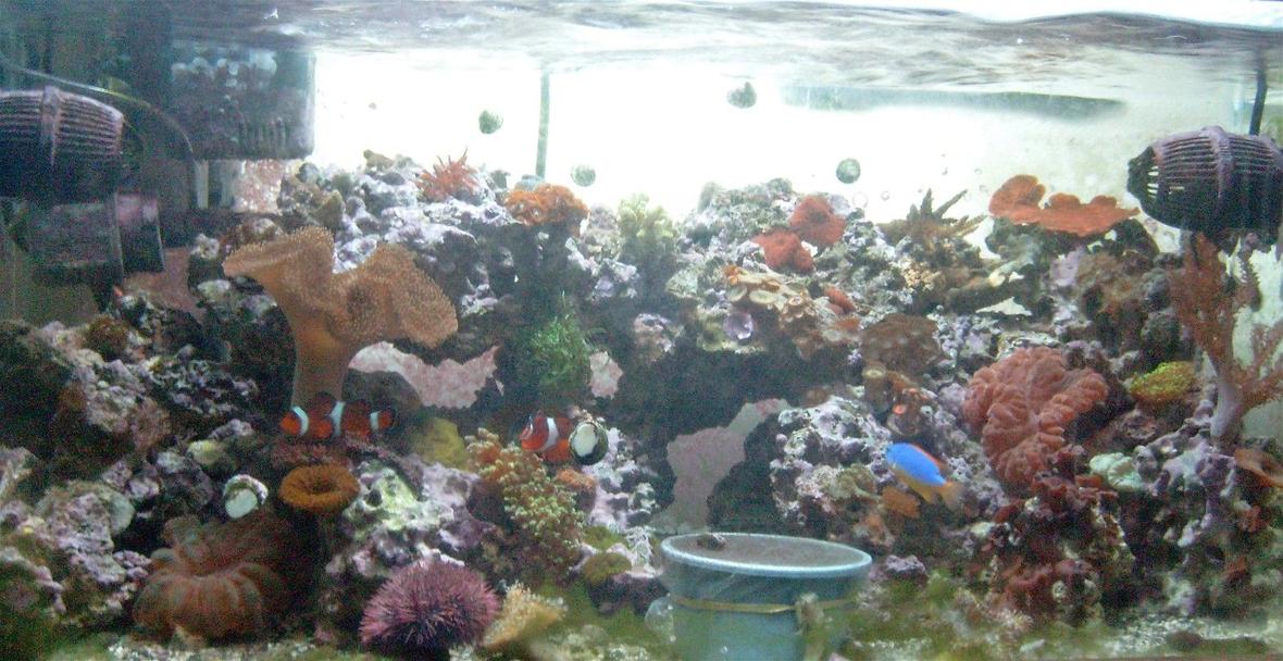 55 gallon planted tank. I have 2 40 watt flourescent tubes, a biowheel 330 and and a magnum 350 for filteration, 2 300 watt visitherm deluxe heaters. Diy co2 injection. Pretty low tech here.
