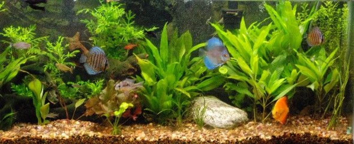 discus, Bolivian rams and various tetras and other schooling fish.