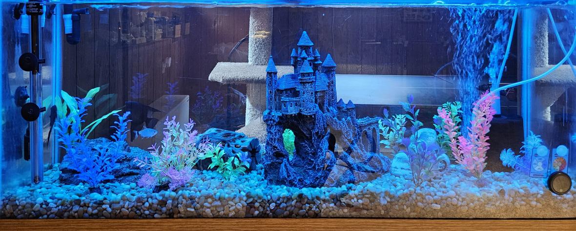 55 gallon freshwater tank, Fluval 407 Canister Filter, Bio Sponge Filter, Hygger 24/7 Lighting Aquarium LED Light