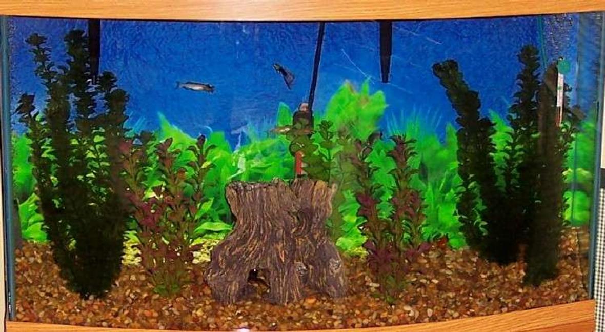 46 Gal. bow front w/two AQUA Clear filters, 50gal. A 200watt heater which keeps the tank at 78 degrees.